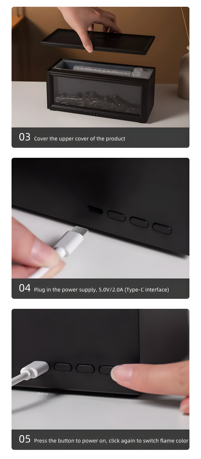 2.Please use a 5V/2A input power supply, otherwise it may affect the atomization effect or cause damage to the product.